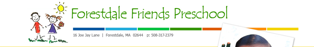 In September 2007, I opened Forestdale Friends Preschool, a Massachusetts licensed and insured school, which I run out of my house. This opportunity has allowed me to continue my love for working with and educating children, and to stay home with my children as well. I wanted a dedicated room for the school, so I hired a contractor to renovate our garage into a spacious, beautiful school room with cathedral ceiling, oversized skylights, and lots of sunshine. During the school year, I run a theme-based academic program in which we participate in circle, art, outside time, field trips, and more. The children learn numbers, letters, mathematics, language and various other cultural subjects. My summer program is more relaxed and fun with a lot more field trips. I’m closed Christmas to New Years as well as one other week during the year.
